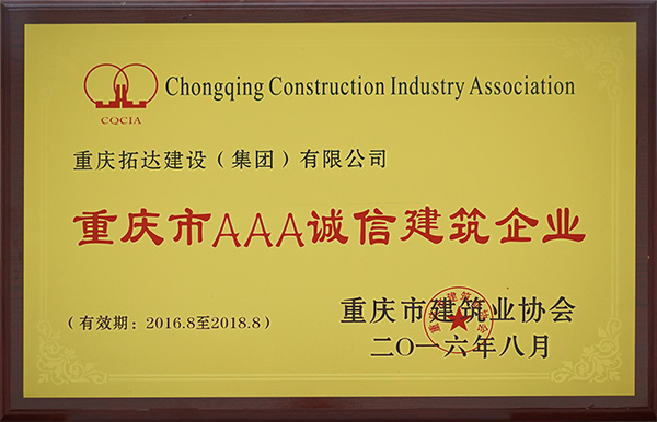 • 2016-2018年度重慶市AAA誠(chéng)信建筑企業(yè)